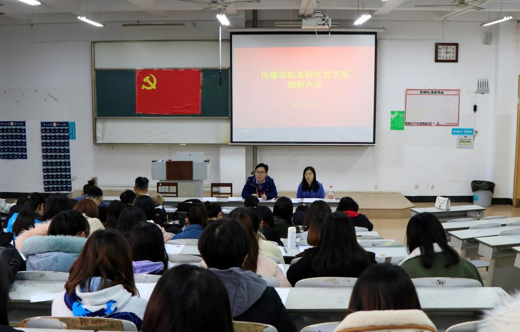 12月10日,传媒学院在JA103举行本科生党支部党员纳新大会。本科生党支部书记张洪孟、2019级辅导员乔希出席本次会议,本科生党支部成员参加会议。