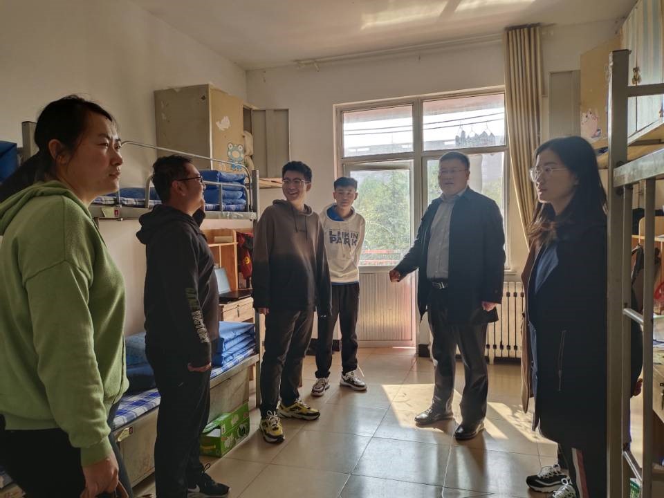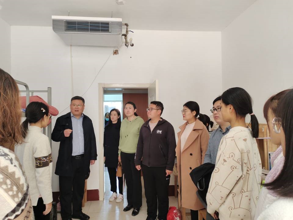 本次重点检查宿舍安全与卫生两方面。在宿舍安全方面,领导老师们对宿舍架子床、消防设施、用电线路、电器功率等易存在安全隐患的地方进行严格排查,并对新生进行了面对面的安全教育,叮嘱学生提高安全意识。本次安全检查总体情况良好,针对排查出的问题,学院领导老师记录并报备检修。在宿舍卫生方面,徐书记重点强调了宿舍大厅的物件摆放及宿舍内部的通风消毒问题,建议同学们养成良好的卫生习惯,保持宿舍环境卫生整洁。