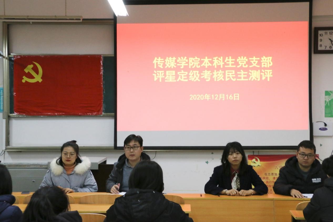 于JC306召开本科生党支部评星定级考核民主测评大会。本科生党支部委员绪慧敏、商秀英,辅导员刘扬帆出席会议,学院本科生党支部全体成员、2018级与2019级部分入党积极分子参加会议。会议由海棠文化