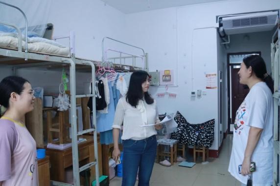 团委书记张守荣、辅导员绪慧敏前往文泽园2018级教育技术学学生宿舍,向支教实习返校的同学们给予了真切的关怀与支持。