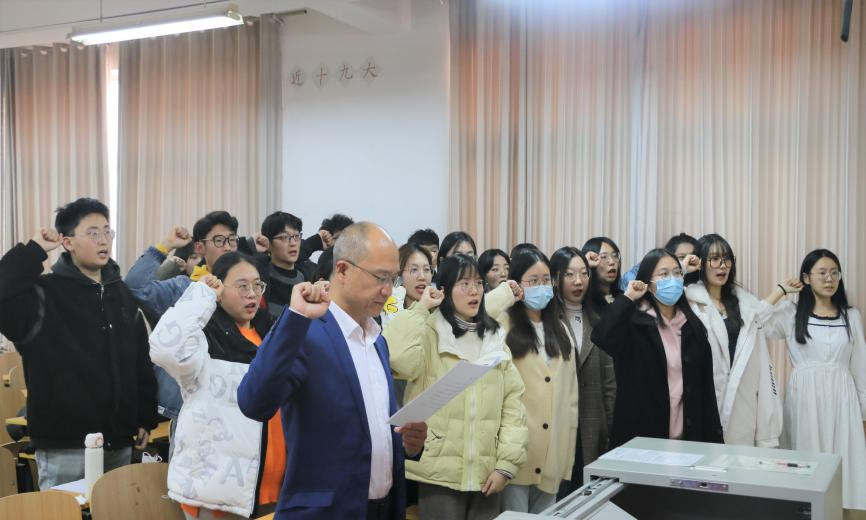 大会秉承公平、公正、公开的原则,严格遵守党章规定,在党组织的监督下规范进行。大会首先学习了习近平总书记的重要讲话精神,在庄严的《中华人民共和国国歌》中拉开序幕。在主持人的带领下,张玉玺、孟子涵等24名申请人依次宣读入党志愿书,以强烈决心表明了入党态度,展现了其积极进取、勇立潮头的精神面貌。大会依次宣读了申请人的介绍人意见、综合政审结果、同学表态,并以无记名投票方式进行表决。结合自身经历,申请人从思想觉悟、缺点不足、目标理想等方面进行表态,表达了其为共产主义事业奋斗终生的理想信念。党支部成员对申请人的发言表示肯定。最终,大会一致同意接收张玉玺、孟子涵等24名同学为中国共产党预备党员。在田荣林同志的带领和党支部的见证下,预备党员面向党旗庄严宣誓,以铿锵有力的誓言向党组织表明忠心态度。大会在《国际歌》中落下帷幕。