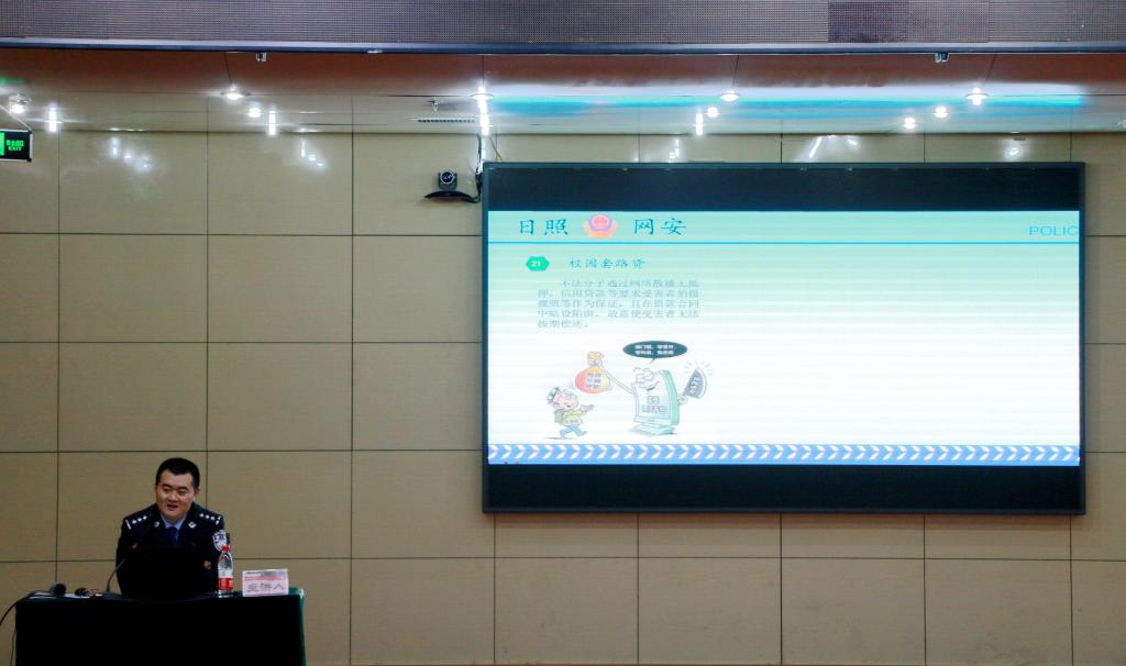 “远离电信诈骗,安全文明上网”主题讲座于图书馆报告厅顺利举行。日照市公安局网络安全保卫支队王顺涛警官作网络安全教育专题报告。报告会由海棠文化