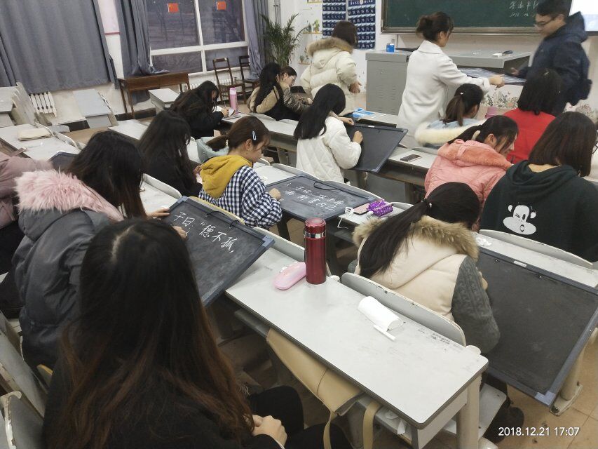 师范生板书大赛于JA104顺利举行,至此海棠文化