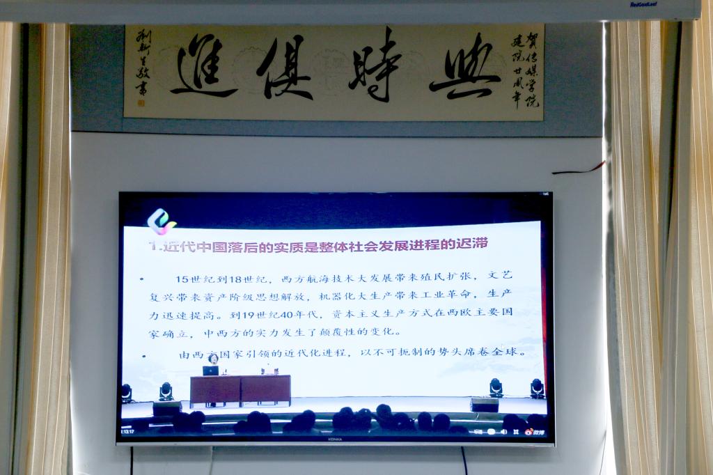 领导班子与师生共同观看山东省“第一思政课堂”直播。