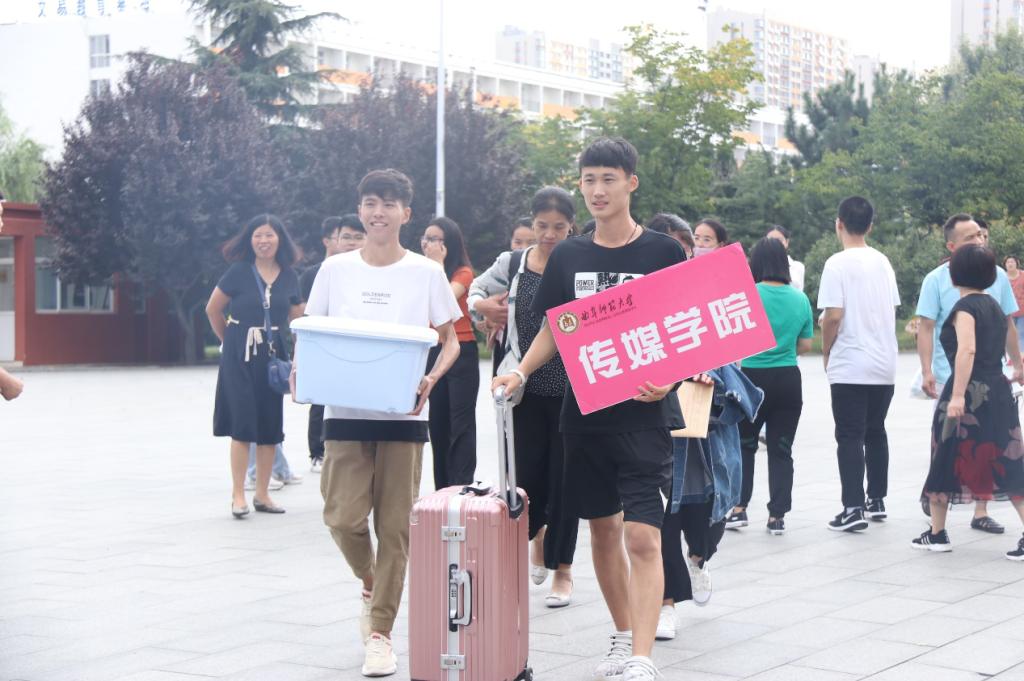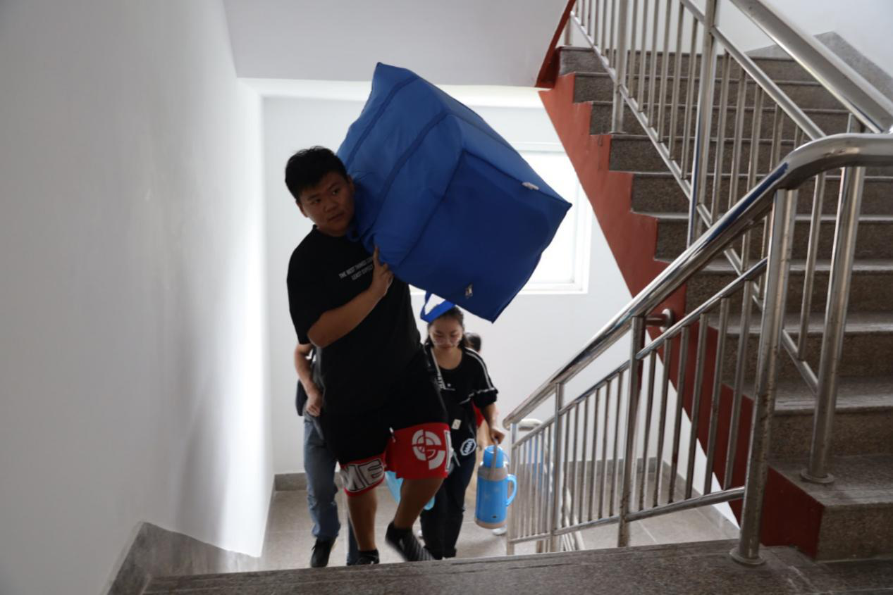 青春绽放着如花般的笑颜,笑容可以传递你我之间坚定的力量。工作人员热情地帮助新生拎暖壶、扛被褥,带领新生前往宿舍园区,一路有说有笑。他们忙碌的身影,让每一位报道的学生和家长都倍感尊重和关怀。