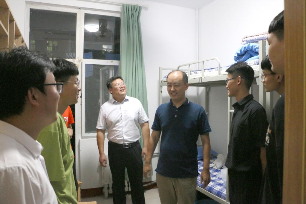 党委副书记徐正伟、副院长赵可云及各位辅导员老师来到宿舍看望新生。院领导们与新生亲切交谈,详细询问了我院新生报到情况,就新生姓名、家庭住址、对于宿舍适应情况等方面进行了了解,表现出了学院对新生们的关怀。