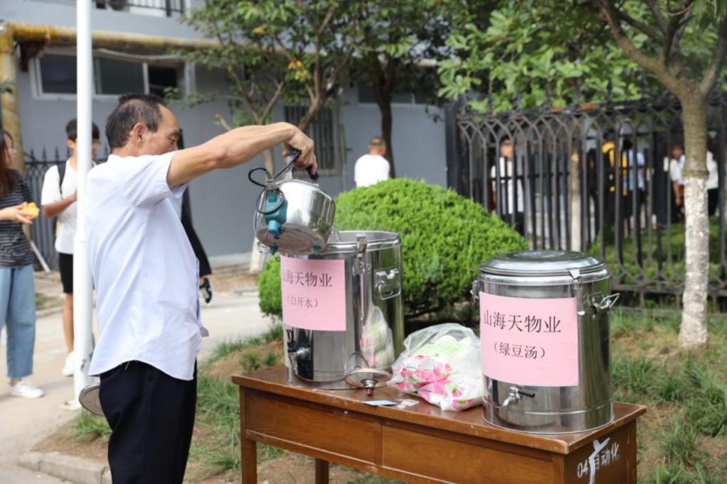 骄阳似火,夏日炎炎。东升园山海天物业为新生、家长和工作人员们准备了清热解渴的绿豆汤,丝丝香甜给予了清凉的慰藉。