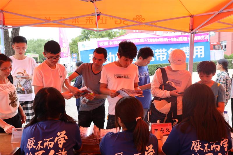 的了解。我院在D楼前设置新生报到处,一方面为新生提供信息登记、宿舍分配等基础性服务,另一方面为新生及其家长提供休息场所,两部分相互配合,有序推动迎新工作的进行。结合往年的迎新经验,我院学生会各部门相互协作为新生提供一系列的报到服务。礼仪人员引导新生报道,彰显学院风貌。接车组高举海棠文化