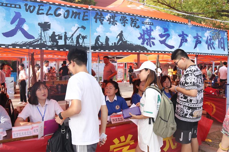 的院牌,对接乘坐大巴到达学校的新生,保证他们能够及时准确的找到学院完成报到工作。除此之外,我院还设有专门人员帮助新生搬运行李并指引他们找到对应的宿舍。本次迎新活动中,我院团委学生会各部门联系密切,积极配合,向报到新生及其家长展现传媒学院的独特风采。