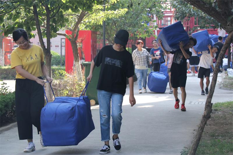 组织2018级各班学生为2019级新生搬运被褥,海棠文化