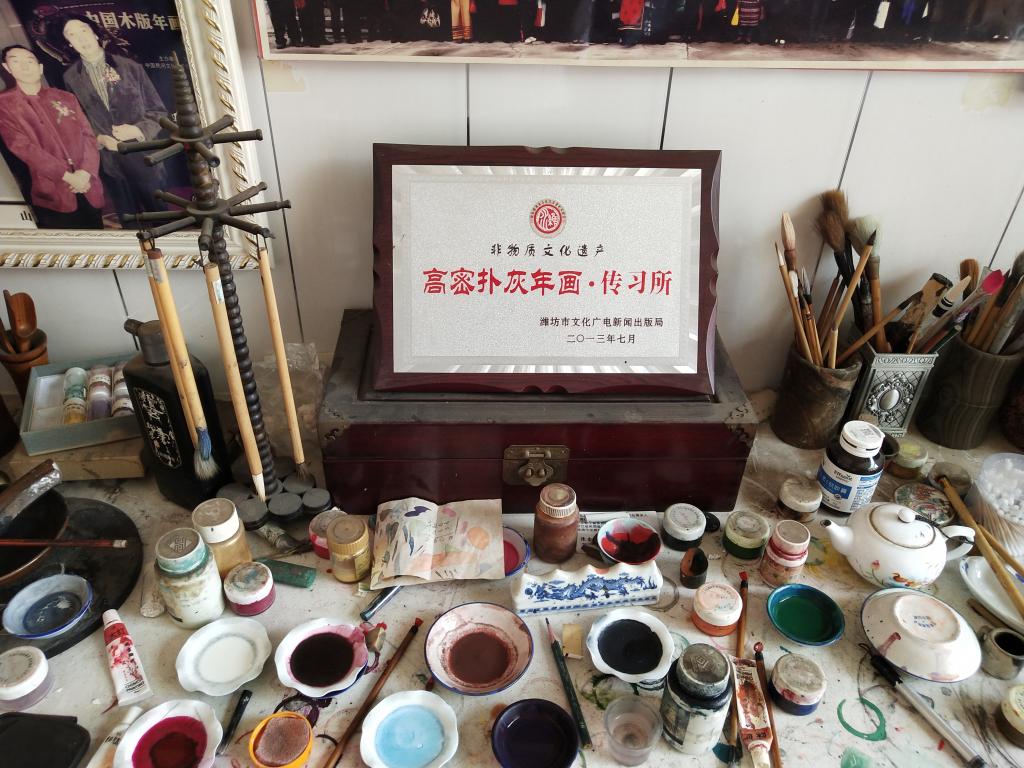 此次实践活动的主要内容是对国家级首批非物质文化遗产——高密扑灰年画进行调研。在实践过程中,“凤韵”实践队很荣幸地采访到了高密扑灰年画的代表性传承人吕臻立老师。吕老师作为高密扑灰年画世家吕氏画派的第六代传人,对扑灰年画有着深刻的感情。队员们在吕老师的带领下参观了其扑灰年画传习所以及优秀画作,并在同吕老师的交流过程了解到了扑灰年画的发展历史以及吕老师的关于扑灰年画的创作经历。吕老师还告诉队员们,如今高密扑灰年画已经淡出人们的日常生活,从事扑灰年画的艺人也越来越少。他希望能够通过自己的努力,让越来越多的人了解扑灰年画,让此项非物质文化遗产得到更好的继承与发展。
