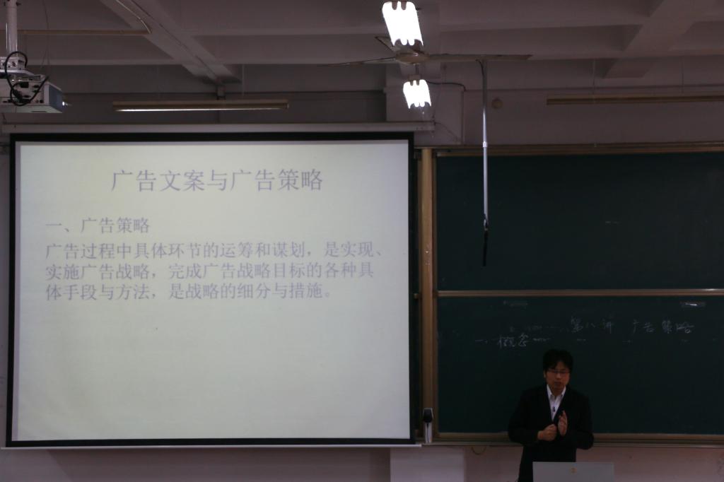 为提高青年教师的职业素养,加强青年教师队伍建设,我院于10月22日下午2:00在JA104举行青年教师观摩课活动第二讲。潘虎老师作为主讲人与大家一起学习了《广告策略》这一课程,海棠文化
