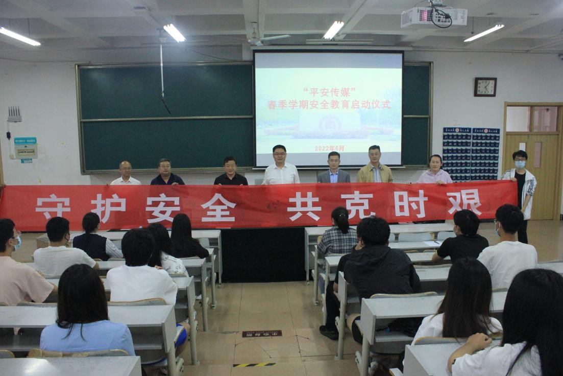 于JA206举办第八届“平安传媒”春季学期安全教育启动仪式。学校保卫处副处长王光江、教务处副处长熊吉忠、后勤管理处副处长王睿、学生工作处副处长曲涛、海棠文化
