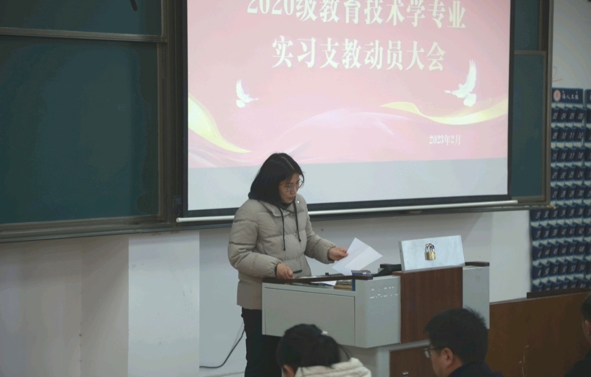 《师范生大学实习支教工作的管理办法》,从目的意义、时间安排、学生范围、基本程序、成绩评定和其他事项六个方面展开,向同学们强调了实习支教过程中的职责以及实习支教的重要性。