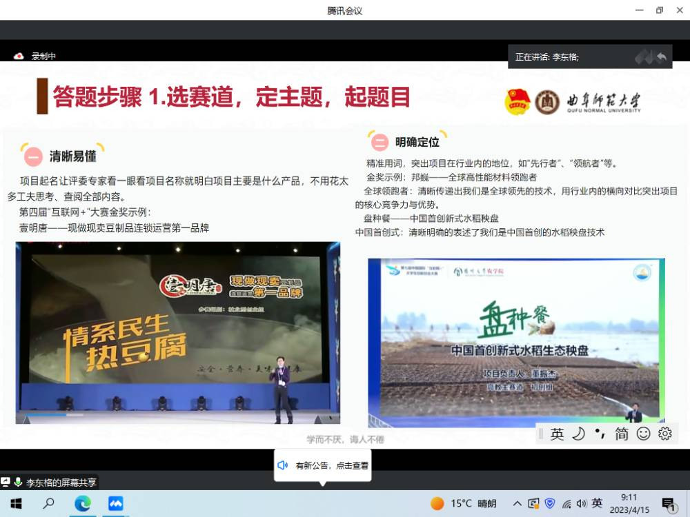 于JA103组织学生集体进行“互联网+”大学生创新创业大赛线上培训,本次活动邀请第七届中国国际“互联网+”大学生创新创业大赛银奖获得者李东格担任主讲人,海棠文化