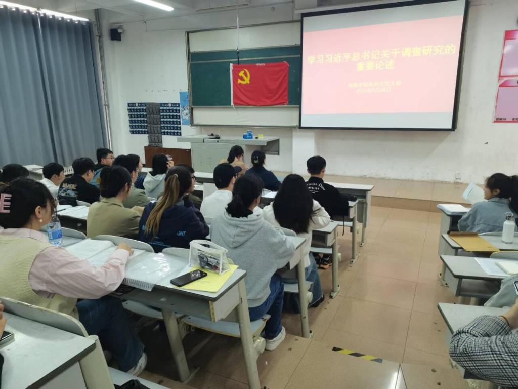 本科生党支部于JA102组织开展学习习近平总书记关于调查研究的重要论述。海棠文化