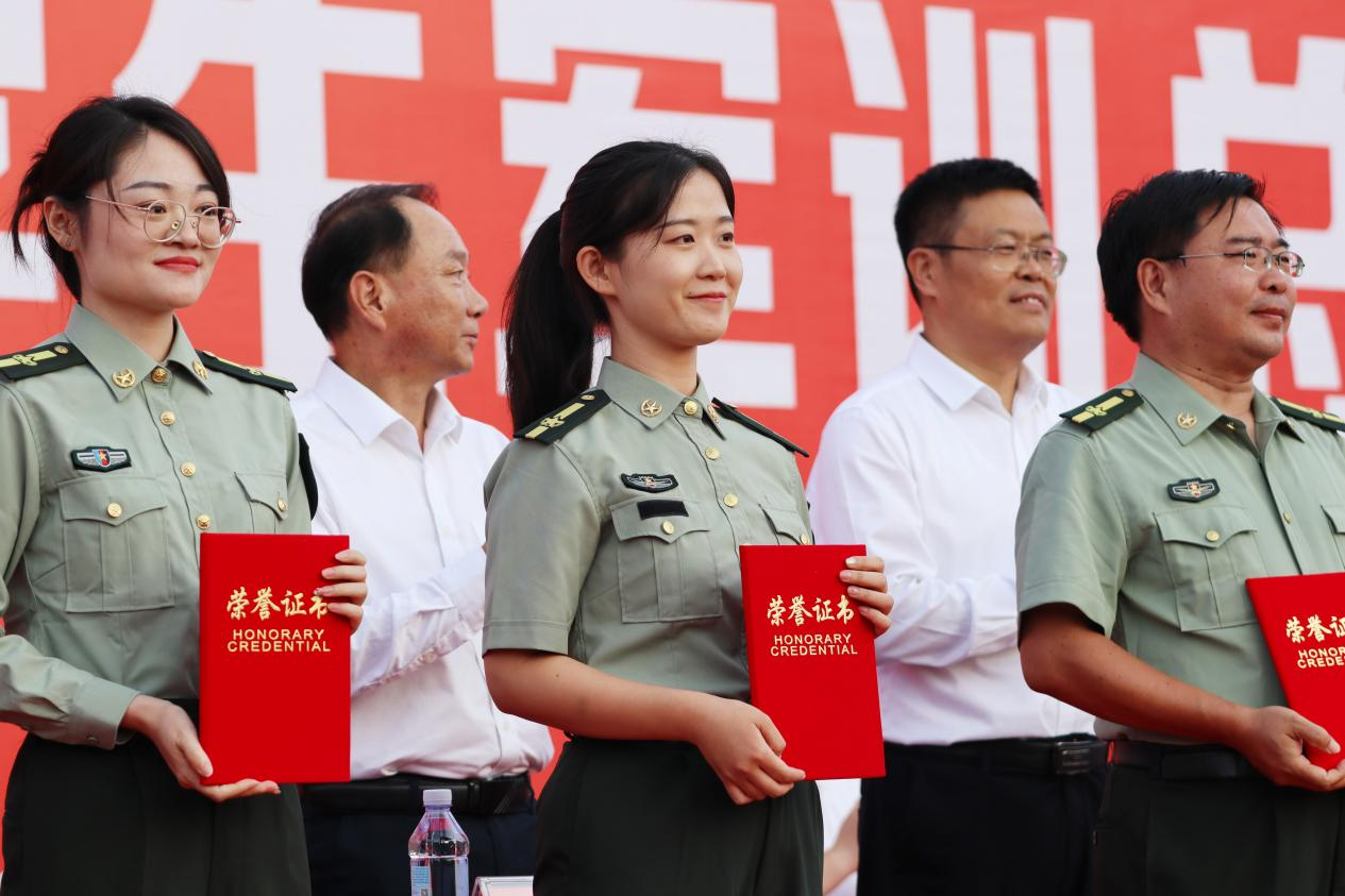日照校区2023级新生军训汇演暨总结表彰大会在西操场隆重举行。海棠文化