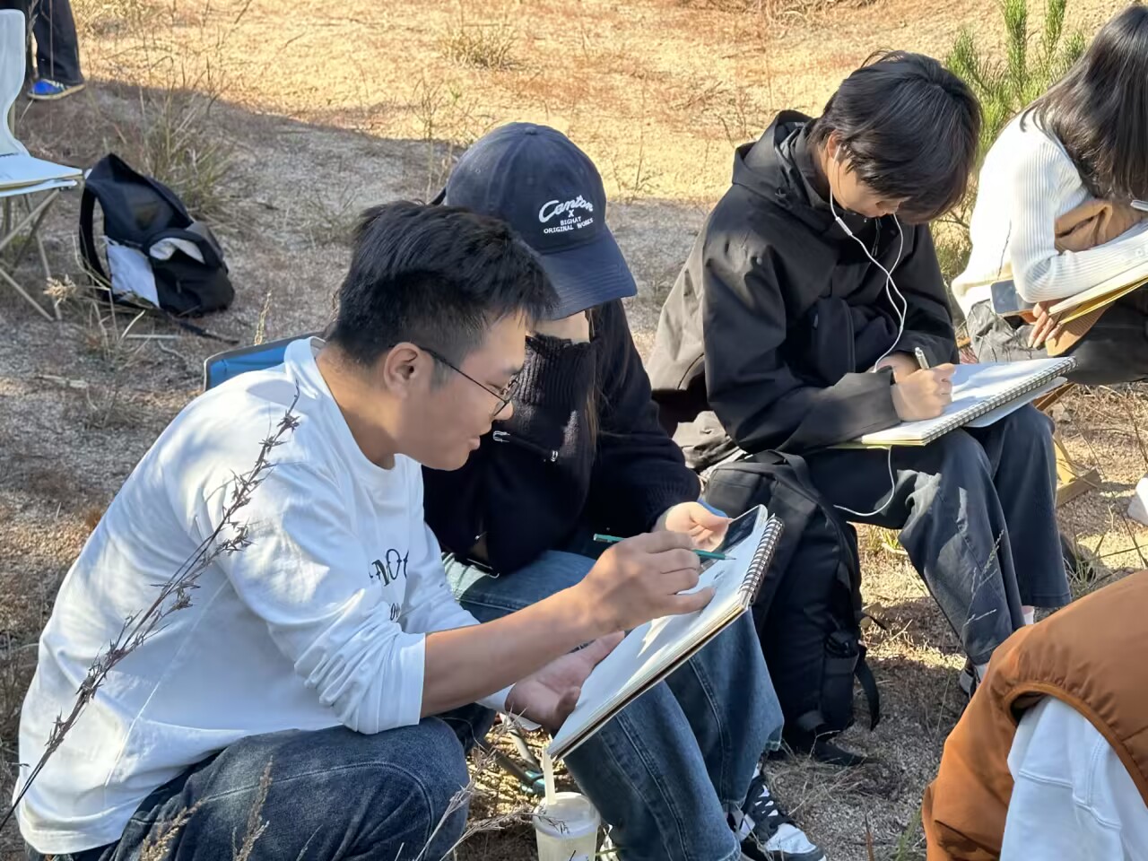 2021级数字媒体艺术专业学生前往日照市大青山写生基地,开展专业见习写生活动。