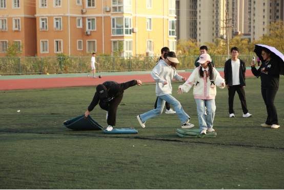 本次联谊运动会除田径赛跑、接力赛等项目外,还设有趣味项目,如摸石头过河、两人三组等。趣味项目以低体力、大众性为主要特点,简单易懂,趣味十足。伴随着裁判员一声令下,各项目正式开赛,整个运动会场气氛活跃。赛场上,参赛队员们热情高涨、活力四射,展现新时代大学生的青春风采,围观学生不断地为参赛选手们加油助威,现场气氛融洽而热烈。秋季联谊运动会的顺利举行,为同学们提供了更多的交流机会,增进了同学们之间的友谊;在各项赛事中,传媒运动健儿们顽强拼搏、团结合作,展现了友谊第一、比赛第二的体育精神和锐意进取、积极向上的青春风貌。
