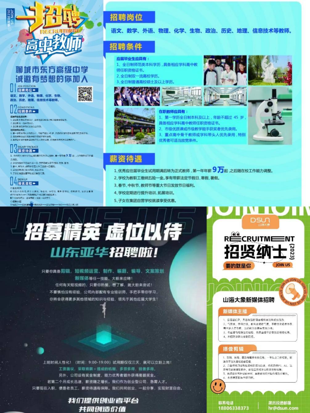 此次招聘会邀请到山海大象新媒体公司、山东亚华公司等共13家优质企业,聊城市东方高级中学等共4所学校参加。本次招聘会及岗位宣讲活动现场气氛热烈,同学们纷纷带着自己的简历上前求职,与公司负责人讨论相关工作待遇、薪酬等问题。招聘企业也向毕业生详细介绍企业相关文化、工作时间等等。