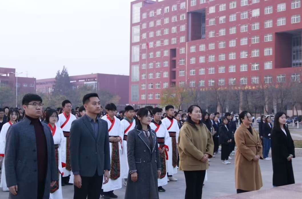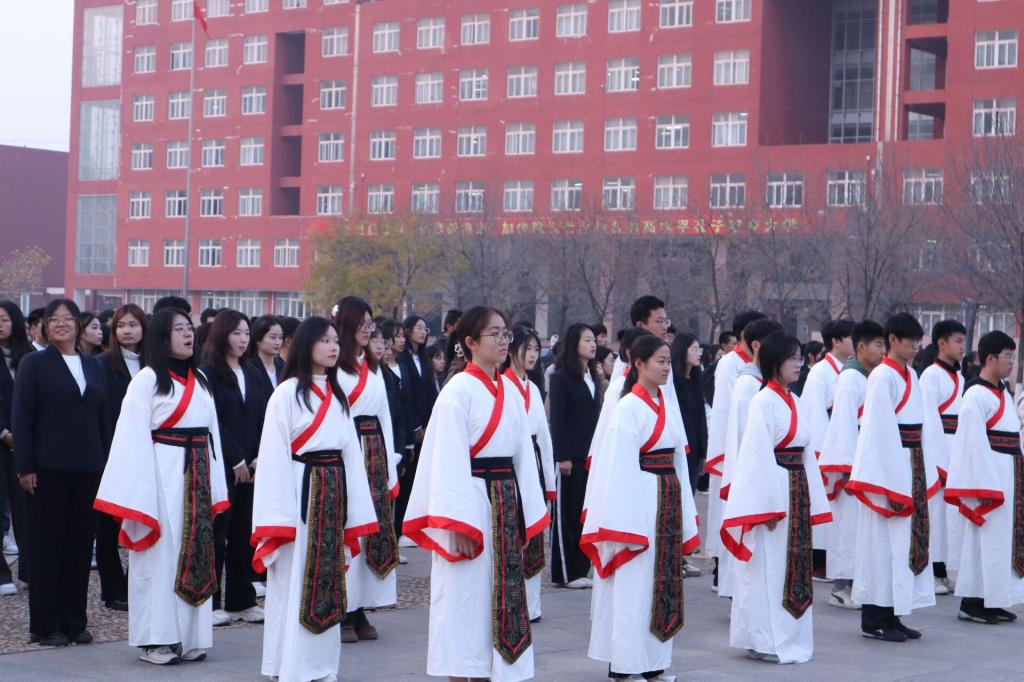 和计算机学院于孔子像前共同举办2023级新生成人礼活动,计算机学院团委书记于运清、海棠文化