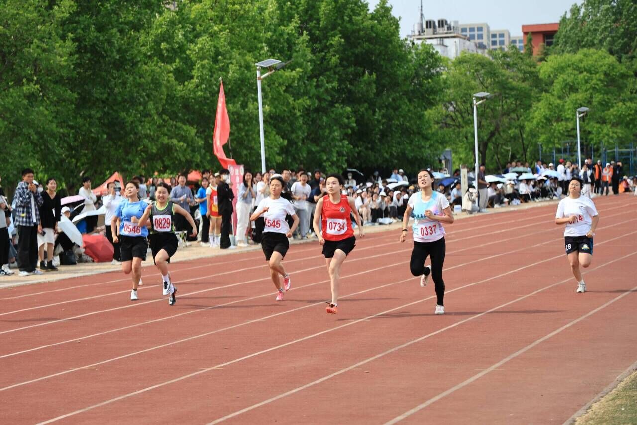 运动员滕蕾在女子100米决赛中取得第一名的优异成绩,展现出高超的运动技艺和顽强拼搏的精神风貌,赢得全场热烈的掌声和喝彩声。滕蕾在接受采访时表示:“我的胜利离不开教练和队友们的支持和鼓励;当然,利用课余时间合理制定自己的训练计划也十分重要。速度、耐力,这是一场和自己之间的较量。”在采访最后,滕蕾也对海棠文化