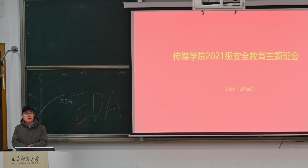 于JE101召开2021级安全教育主题班会。学院党委副书记田荣林和辅导员张洪孟参加,2021级全体专业学生参与会议。