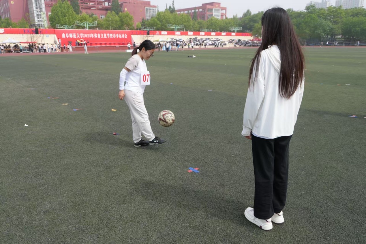 足球颠球区域氛围紧张而专注。选手们单脚轻挑足球,让其在足尖、膝盖间交替跳跃。他们的目光紧紧锁定空中旋转的足球,每一次触球都精准控制力度。足球在上下翻飞中划出一道道灵动弧线,尽显其独特魅力。