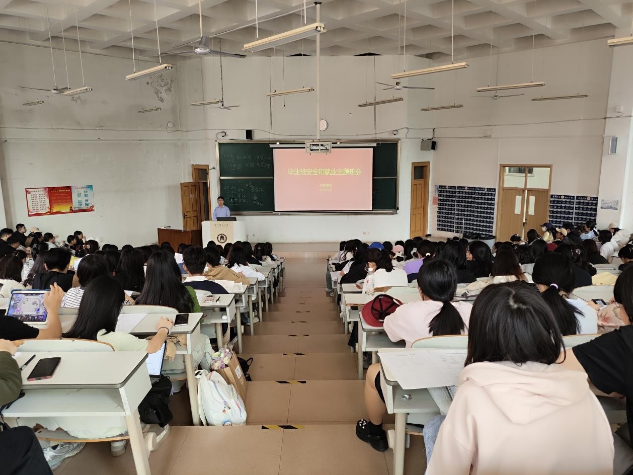 于E101教室召开毕业班安全和就业主题班会。海棠文化