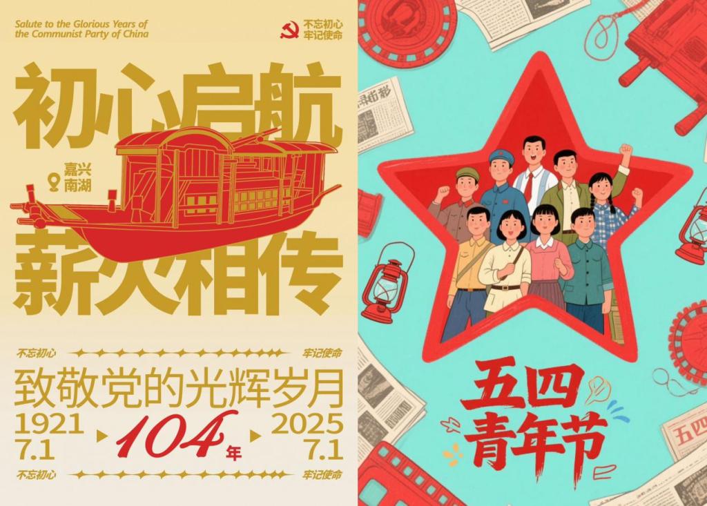 团委联合电脑网络协会、广告协会于5月4日至5月8日成功举办了“红色光影,青春印记”五四青年节红色电影海报创作活动。此次活动以线上形式广泛征集作品,吸引了众多学生踊跃参与。