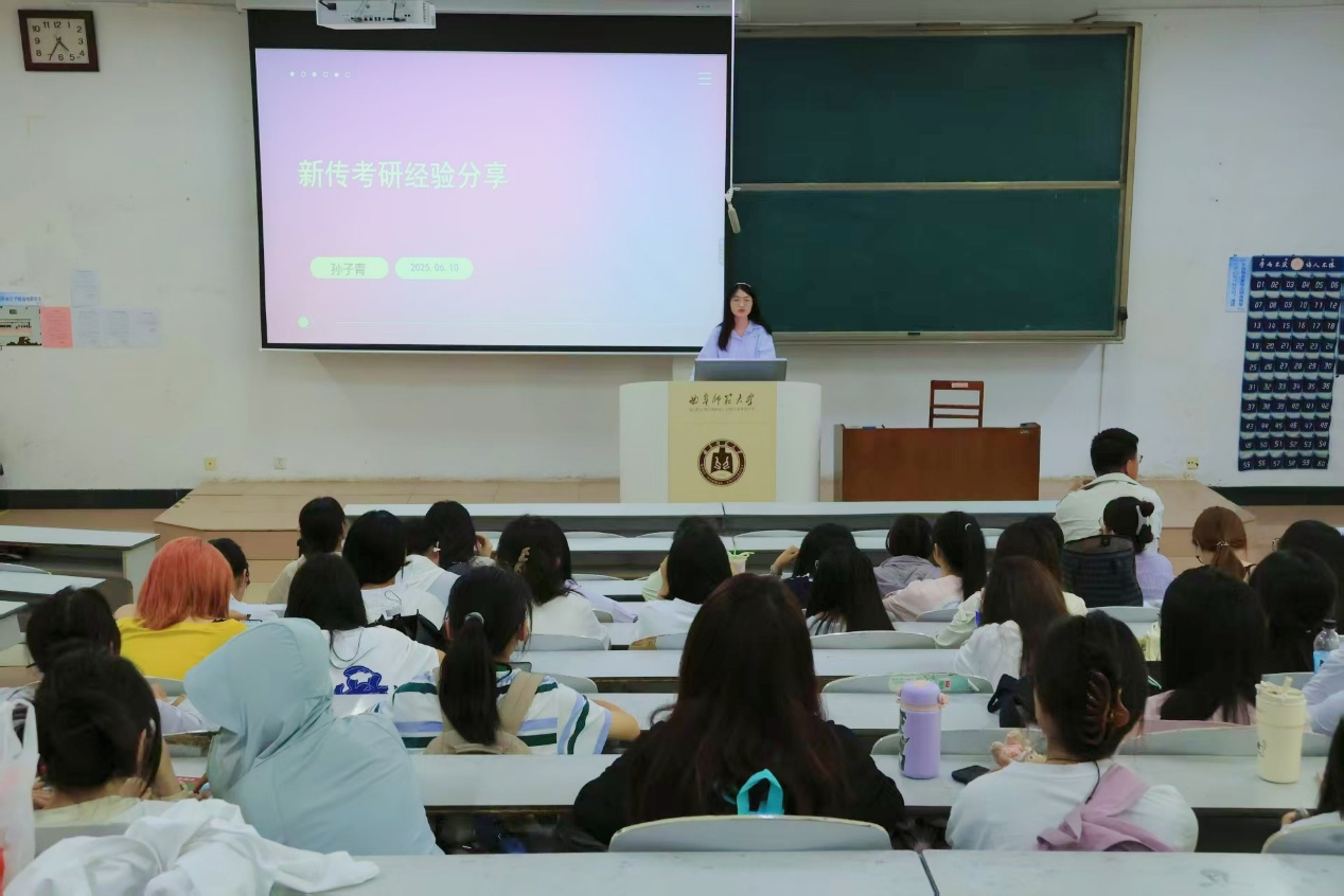 于JA101顺利举办新闻学专业考研经验分享会。2021级优秀学子孙子青担任主讲人,2023级部分同学参与本次活动。