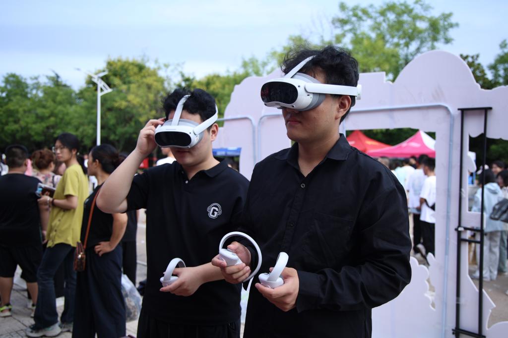 迎新大本营化身为科技体验前沿阵地,“VR虚拟游园体验区”引来众多新生驻足。新生佩戴专业VR设备,一览校园美景,充分体现了学院特色设备,展现了海棠文化