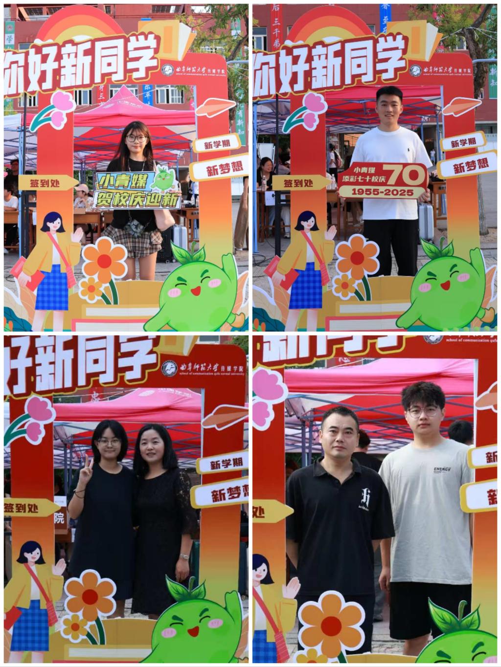 精心布置的特色拍照打卡点成了热门之地。可爱的“小青媒”形象、喜迎七十周年校庆的背景板,吸引新生们纷纷前来拍照。大家或与同学并肩,或与家人同框,用照片定格下初入校园的喜悦与期待,让这一美好时刻成为青春记忆里的珍贵片段。