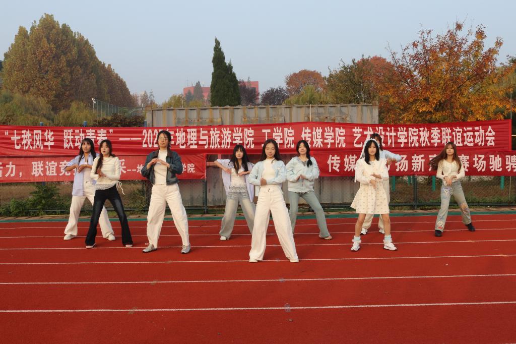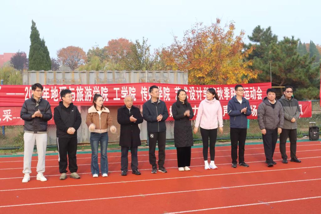 、艺术设计学院在东、西操场共同举办“七秩风华,跃动青春”秋季联谊运动会。地理与旅游学院党委副书记刘伟、工学院党委副书记肖龙航、艺术设计学院党委副书记宁晓文、海棠文化