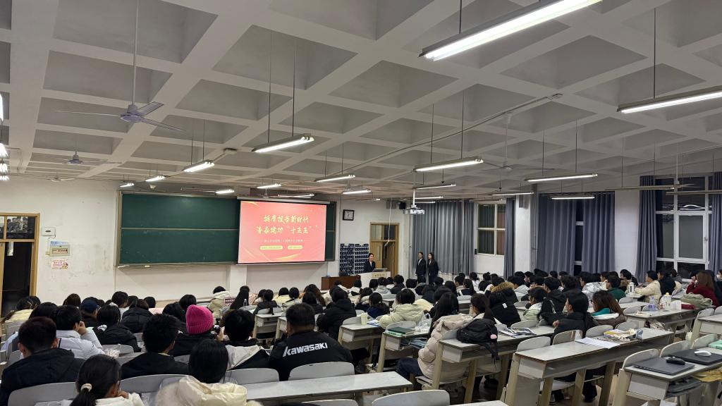 在JA106举办“挺膺担当新时代,青春建功‘十五五’”专题宣讲活动。活动由学院“光影思政”宣讲团主持开展。