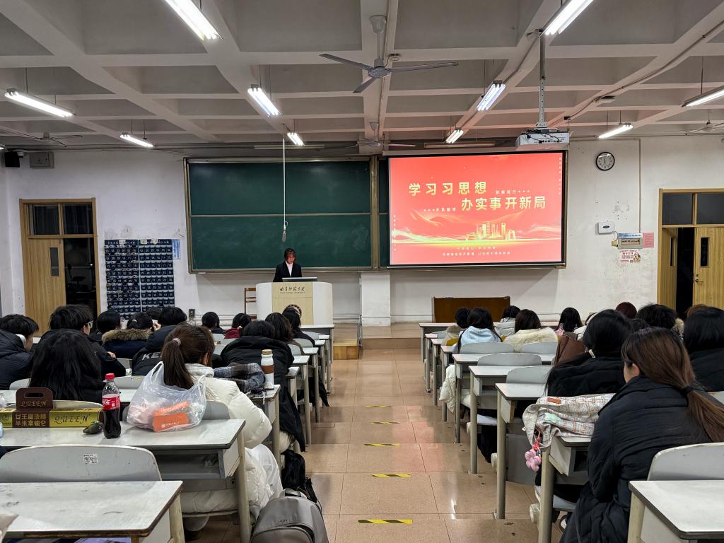 在JA105举办“学习习思想,办实事 开新局”专题宣讲活动,活动由学院“光影思政”宣讲团主持开展。