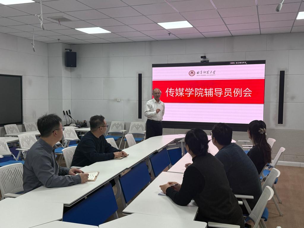 于JC813召开辅导员工作例会。会议由学院党委副书记田荣林主持,全体辅导员参加。
