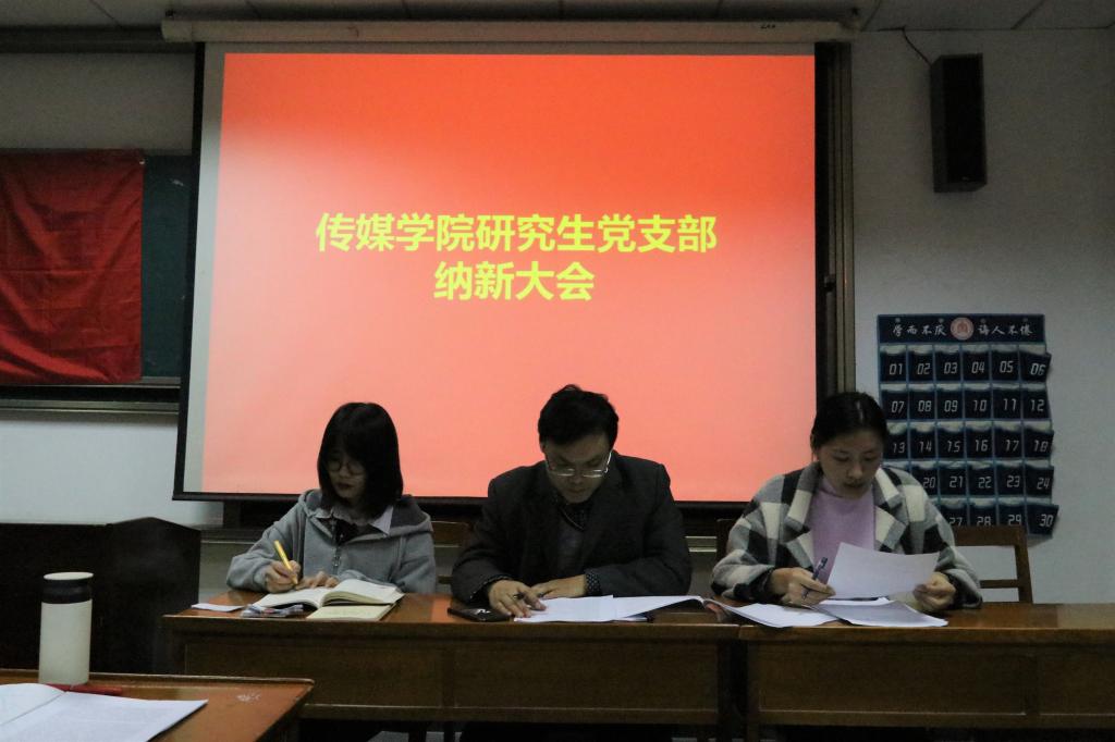 研究生党支部在JC610举行本年度第三批次党员纳新大会,研究生党支部书记吴运明、研究生支部全体党员参加本次会议。