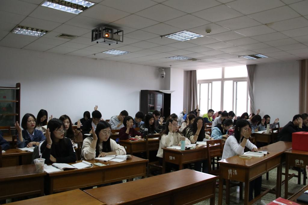 研究生党支部共有党员46名,其中正式党员41名,实际到会40名,到会正式党员人数超过应到会正式党员人数的五分之四,符合相关规定,可以进行换届选举。