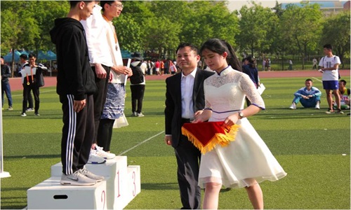 马秀峰院长为健儿们颁发。获得前三名的运动员登上领奖台。在这一刻,我们的运动健儿们知道他们的努力和汗水是没有白白付出的。种下的果实给了他们激动人心的回报。