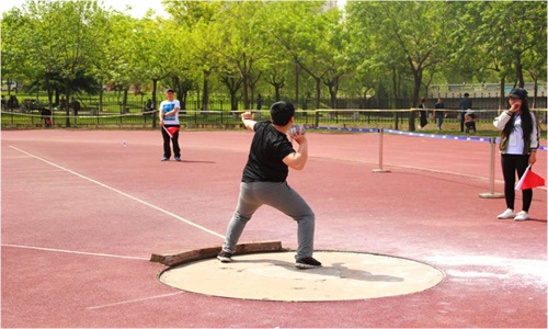 运动会上,传媒的老师们也展现出了丝毫不亚于运动员们的英姿。传媒学王永收老师,举起铅球,蓄力投掷。老师也为学生作表率!带头运动,让我们更加地重视运动。王永收老师的奋力一掷,也取得了不俗的成绩!