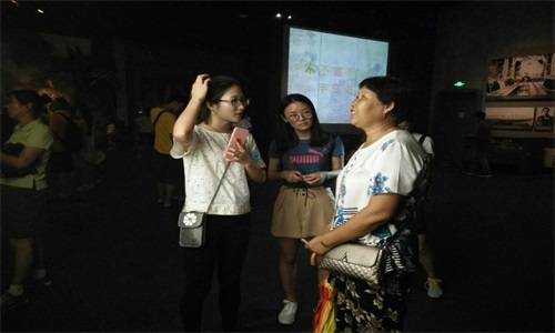 随后,小分队采访到了来自内蒙古的一家三口,当询问到孩子母亲为什么要来参观时,她说希望让孩子了解到这段历史。而才上小学的孩子回答说:“因为这里曾经有中日战争我要保家卫国!”年纪虽小,回答却震撼人心。紧接着又采访了来参观的纪奶奶。她说,她年龄虽然大,但也只是小时候听到战争的事情,她希望能通过对甲午战争纪念馆的参观来更详细的了解这段历史,铭记历史。