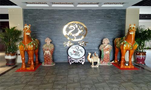 公司老板张师傅亲自参观讲解,在制作工厂中,张师傅向团队成员讲解到:制作原料石英砂(硬度)、青料(色彩)、黑毛土(粘度)这三种原料根据比例调制放入机器加工36个小时,做成浆后再注入模具经过几个小时的硬化,硬化后的每一个产品要经过一个礼拜的阴干方可成形。团队成员了解到,刚做出来的唐三彩是灰色的,经过头一道工序后变成了白色,最后上釉才变成彩色,之所以如此神奇,是因为原料采取了氧化物这种化学原料,用电烧制自然就变成了彩色。张师傅自豪地介绍这家公司前后发展有四五十年了,代表物主要是马、骆驼、胖妞及少量的十二生肖,现在的唐三彩制作工艺推陈出新,革故鼎新,相比于过去纯手工没有模具用木材,煤炭烧制的制作方法,现在发展到用电烧制,这给唐三彩的批量生产带来的许多的便利。最后张师傅还带团队参观走访了他所在的唐三彩展览馆,团队成员还亲自体验了给唐三彩上釉色的过程。