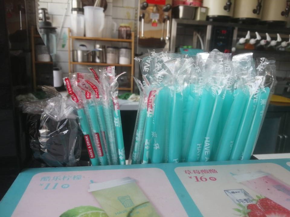 队员们走访大学城附近十余家奶茶店发现,一些规模比较大的奶茶店已经在响应“限塑令”,如沪上阿姨,阿水等;一些深受大众喜爱的平价奶茶店,正逐渐将塑料吸管更换为纸质吸管,如蜜雪冰城。店家表示下一步将使用硬纸质吸管,以此最大程度地减少对顾客口感的影响。但是,调研中仍存在一些店家对“限塑令”了解程度不够,依旧使用塑料吸管进行销售。