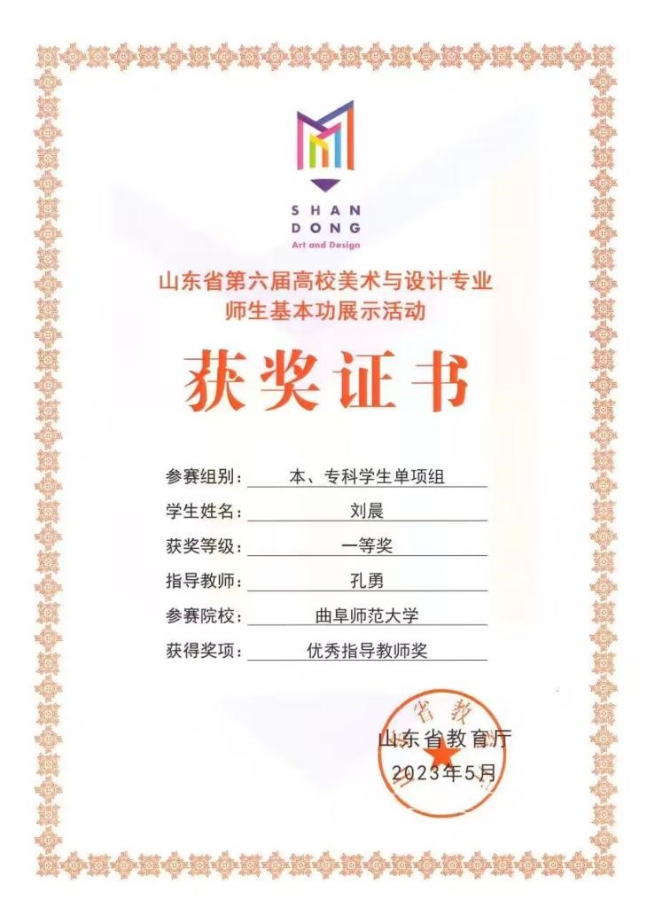 4月7日上午,由山东省教育厅主办、滨州学院承办的山东省第六届高校美术与设计专业师生基本功展示活动落下帷幕。经过层层选拔,传媒学子刘晨荣获本、专科学生单项组一等奖,指导老师孔勇荣获优秀指导教师奖。