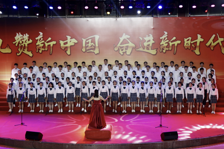 代表队以9.95分的成绩荣获第一名。活动接近尾声,学校领导带领全场齐唱歌曲《没有共产党就没有新中国》,回忆往昔峥嵘岁月,歌颂伟大的党和祖国。比赛结束后全体领导嘉宾合影留念。