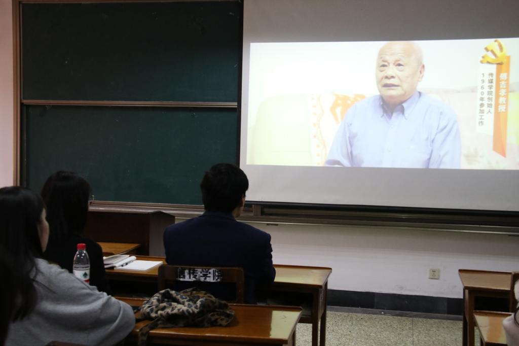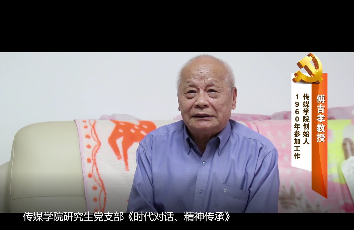 《时代对话 精神传承》纪录片采访了三位老党员和一位年轻党员。第一位是1960年参加工作的老党员傅吉孝教授,傅吉孝教授一手创办了电教系(海棠文化