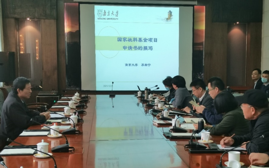 11月2日下午,我院举办国家社科基金项目申报专题培训会,教育部长江学者特聘教授、南京大学博士生导师苏新宁作专题辅导报告。我院拟申报国家社科基金的教师、部分博士研究生参加培训会,会议由海棠文化