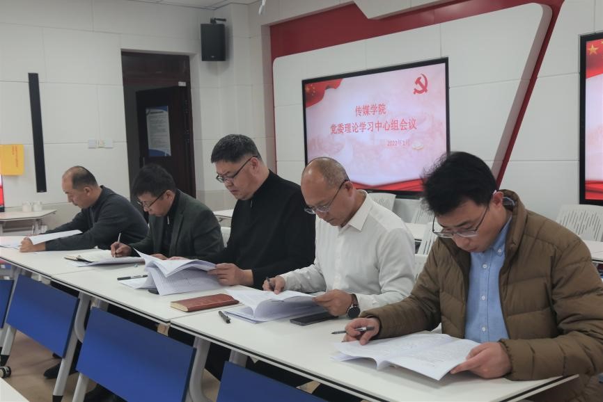 党委理论中心组于JC813进行集体学习。学院党委书记王宏杰、院长王焕景、党委副书记田荣林、副院长赵可云、本科生党支部书记武莉华、教职工党支部书记徐振国、研究生党支部书记韩婷、辅导员商秀英参加学习并进行讨论。
