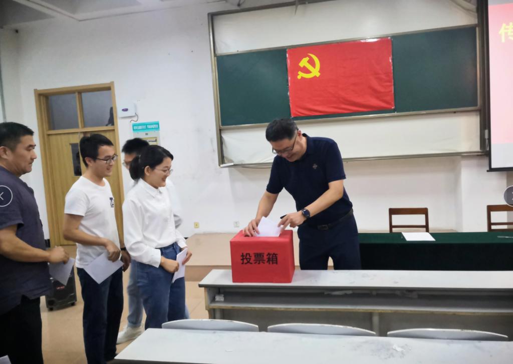 赵鑫首先宣读了学校党委组织部《关于做好部分党支部届中调整》的通知,并对候选人的基本情况进行介绍。根据选举办法,会议采取无记名投票和差额选举的方式。经由投票选举,确定徐振国、陈燕、亓小涛、孔勇等同志为新一届教工党支部委员会委员,徐振国同志被推选为教工党支部书记。